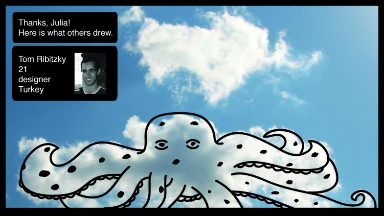 After the visitor submits a drawing, the interface may show another interpretation of the same cloud, if another person drew on it.