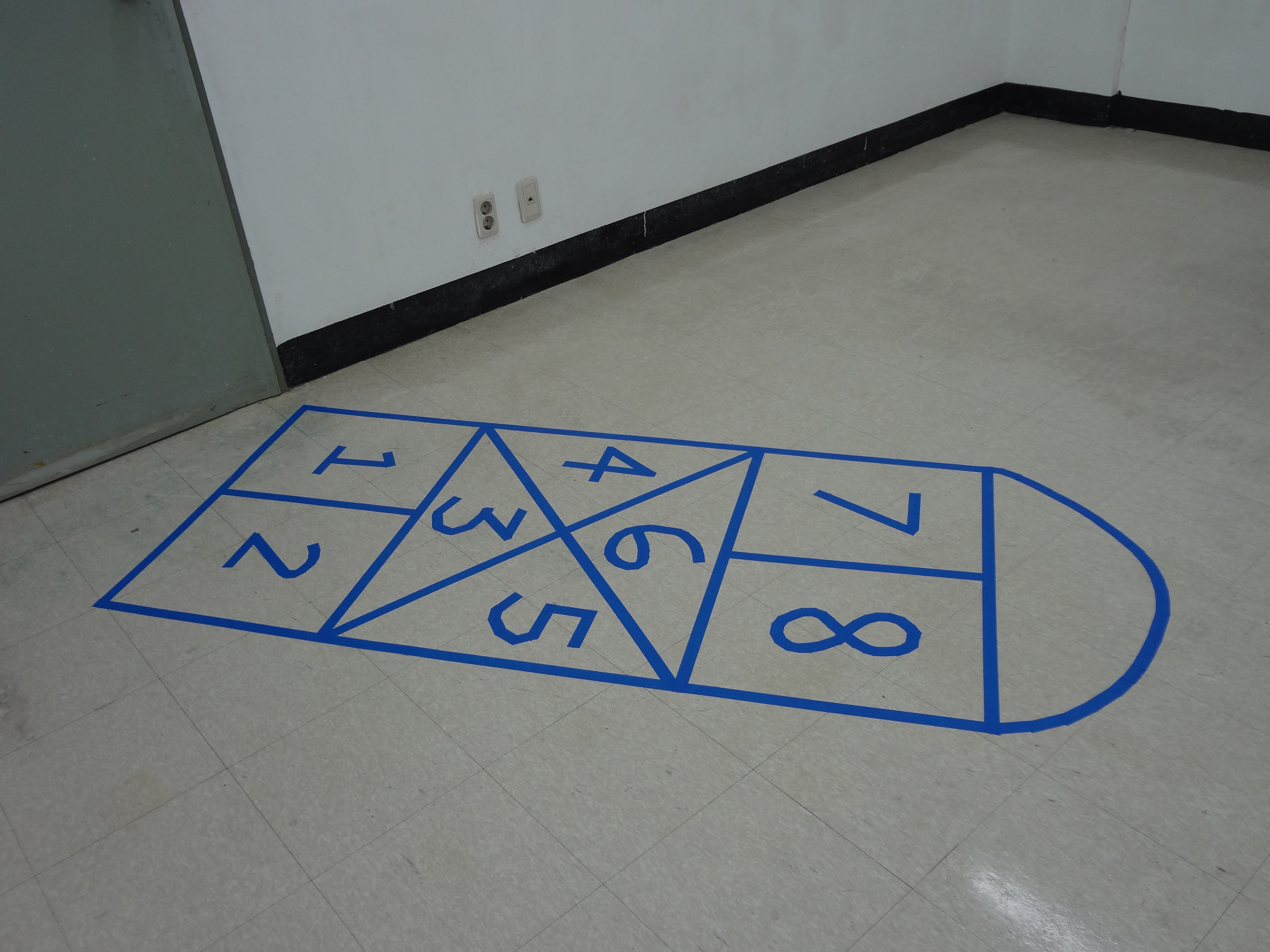 Beginning today, all visitors are now required to play a game of hopscotch when they enter my studio.