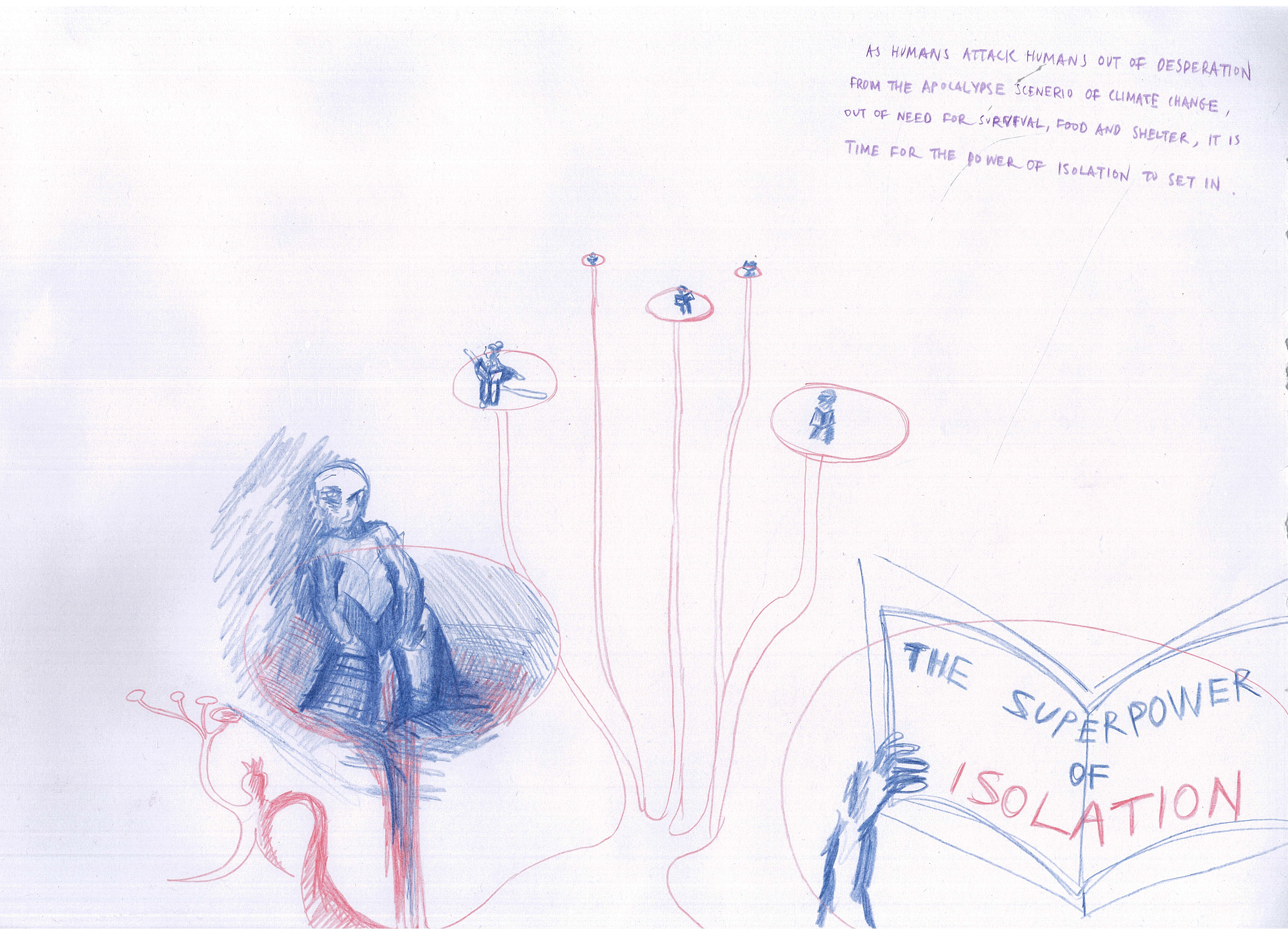 “As humans attack humans out of desperation from the apocalypse scenario of climate change, out of need for survival, food and shelter, it is time for the power of isolation to set in.” —Lam Yuen Kei