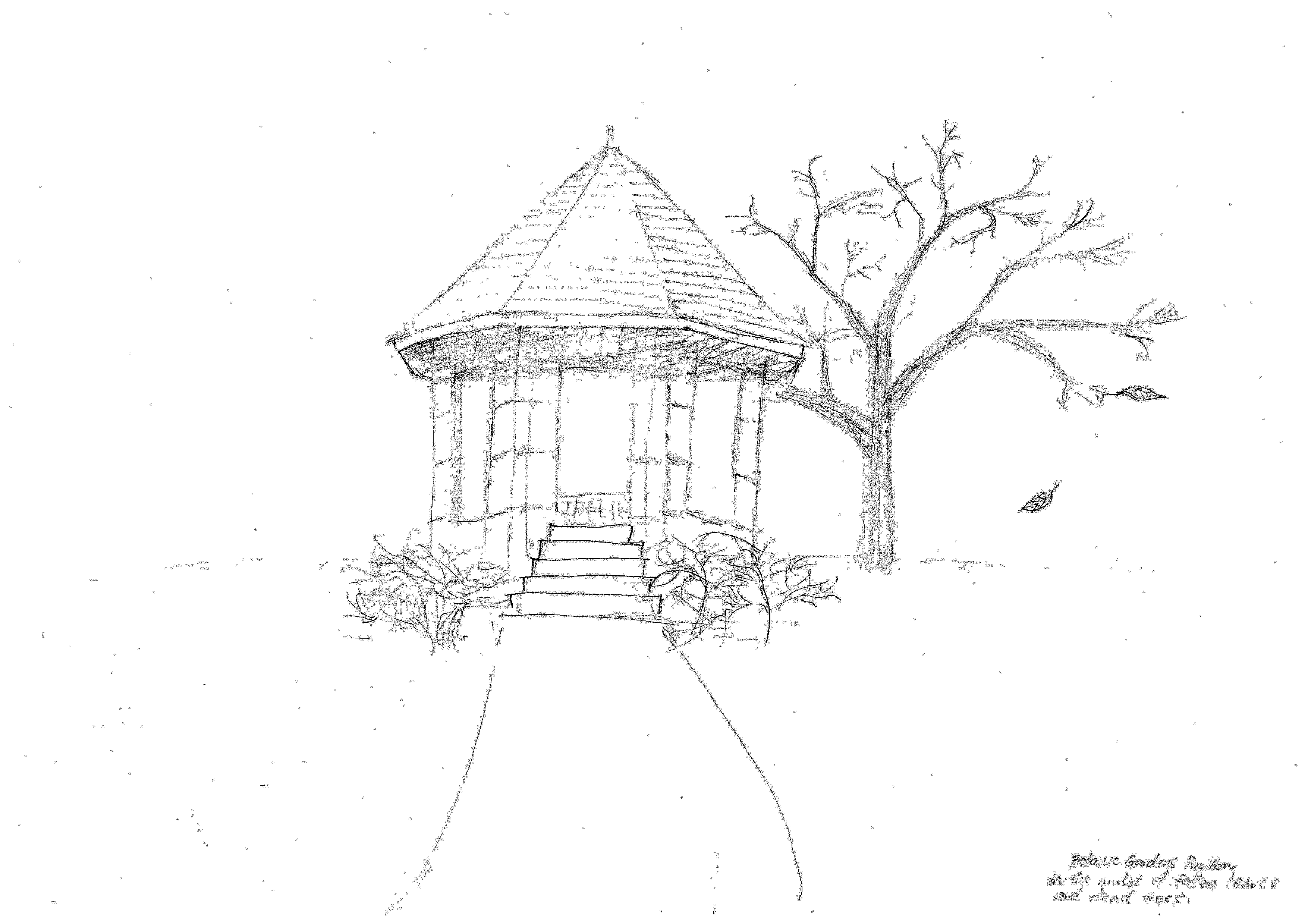 Botanical Gardens Pavilion in the midst of fallen leaves and dead trees