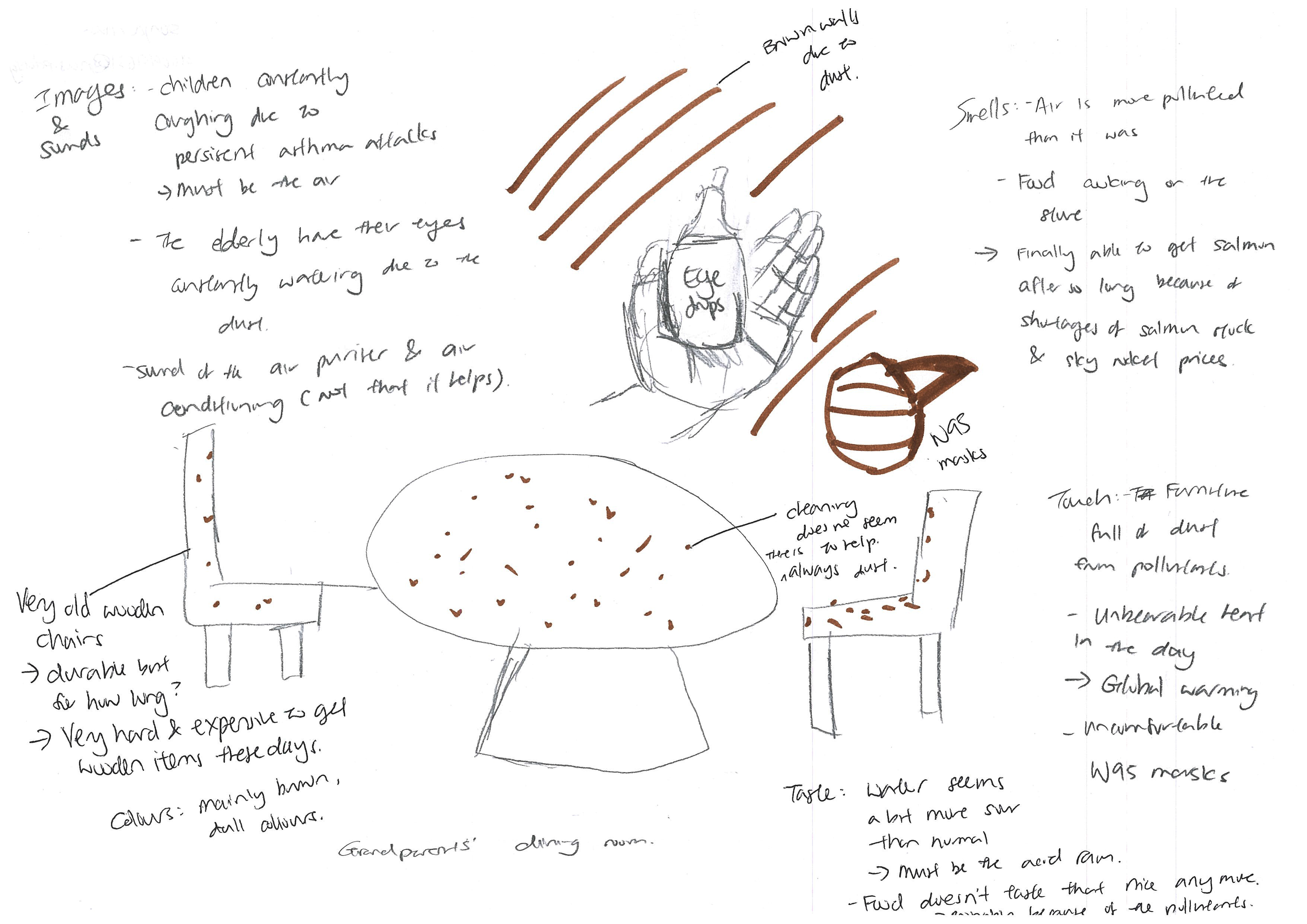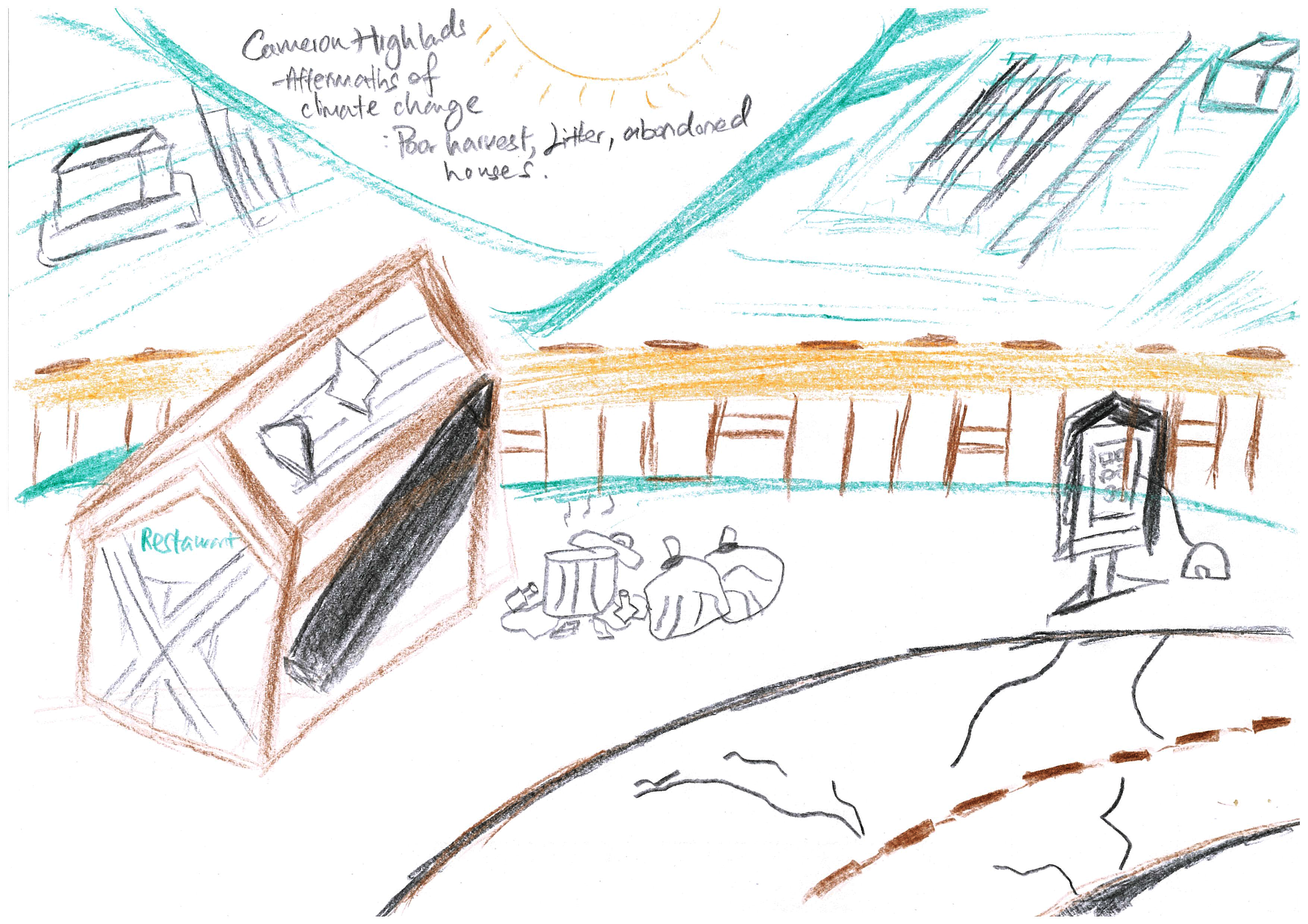In 50 years, if climate change has revealed its tipping point, I imagine that the heat will be unbearable. So unbearable that the air-conditioning would have to be left on 24/7 (leaving us with the guilt that we may be making things worse, but yet not knowing how else to cope with the heat). The air will be heavy with the smell of burnt and melting rubber and plastic as a result of [increase] in UV rays reaching the Earth’s surface. Aeroplanes carrying tourists will be replaced with government aircrafts to distribute supplies and monitor environmental conditions.