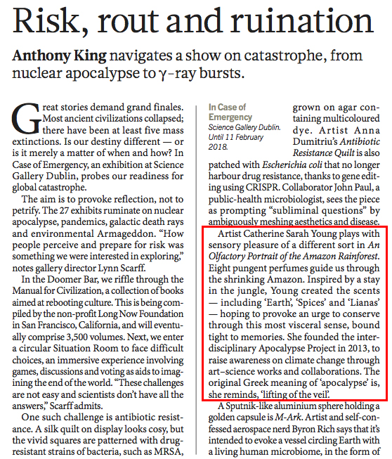 Nature Magazine writes about #ICOE and mentions The Apocalypse Project and An Olfactory Portrait of the Amazon Rainforest Original size at 558 × 653