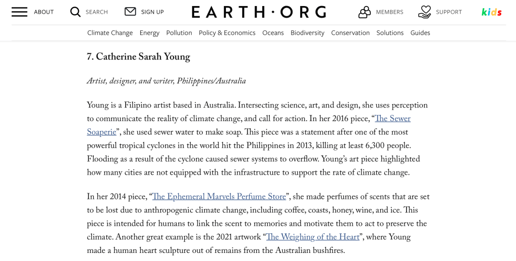 I’m on the list of 10 Women Leading the Fight Against Climate Change by environmental news website Earth.Org. I feel humbled being among a list of amazing humans, including Elizabeth May (Leader of the Green Party of Canada), Marina Silva (Minister of Environment and Climate Change, Brazil), Kimiko Hirata (Executive Director at Climate Integrate, Japan), Eleni Myrivili (UN Chief Heat Officer, Greece), Dayle Takitimu (Co-Chair, Miisterial Advisory Committee, Aotearoa/NZ), Dorte Krause-Jensen (Professor, Aarhus University, Denmark), Melina Laboucan-Massimo (Founder of Sacred Earth Solar & Co-Founder and Senior Director of Indigenous Climate Action, Canada), Nicola Kagoro (Chef, Zimbabwe), and Winnie Cheche (Climate activist, Kenya). Thank you so much!