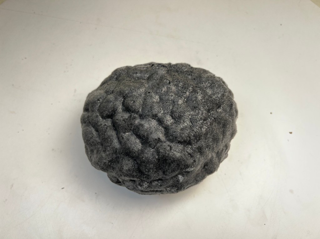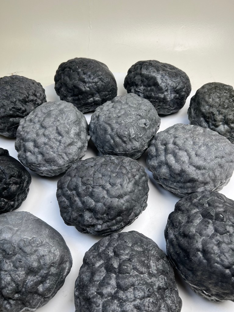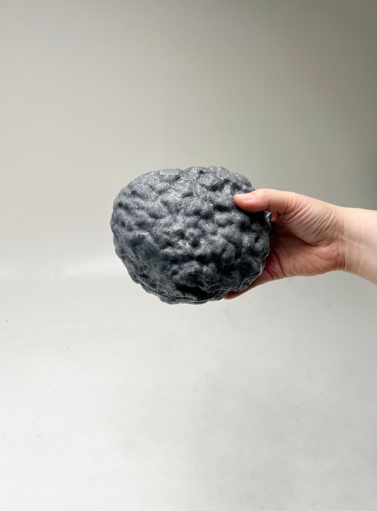 Instead of plush toys, this machine is filled with soft, squishy objects shaped like polymetallic nodules — real mineral deposits found on the ocean floor that contain metals used in batteries, electric vehicles, and clean energy systems. These playful stand-ins invite visitors to think about how “green” technologies can still depend on extractive practices that harm the environment. The machine plays a custom audio track of a mining expedition.