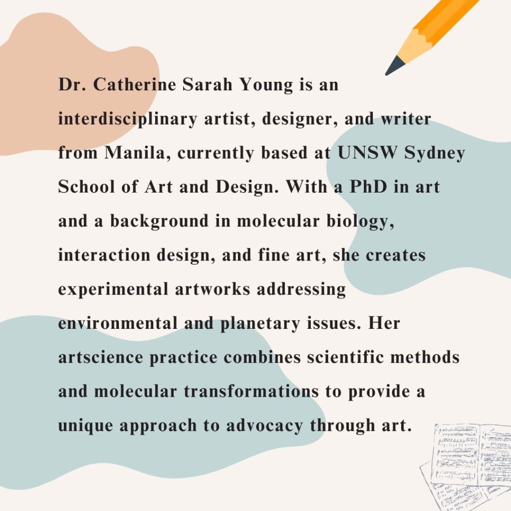 I gave a talk in this cool speaker series in Queen’s University in Ontario, Canada this November 3, 5pm-7pm (November 4, 8am-10am Sydney) on my artscience and sustainability practice. It was an honour to speak with our keynote speaker, Dr. Benjamin Bolden (music educator, composer, and UNESCO Chair in Arts and Learning at Queen’s University); Evan Sharma (multidisciplinary artist); Ren Challacombe (PhD candidate and choral arranger); and Heather Haynes (artist). Exhibit Change is a Queen’s Club that aims to inform the community about social issues and uses the power of art as a conduit for advocacy. Thank you for having me!