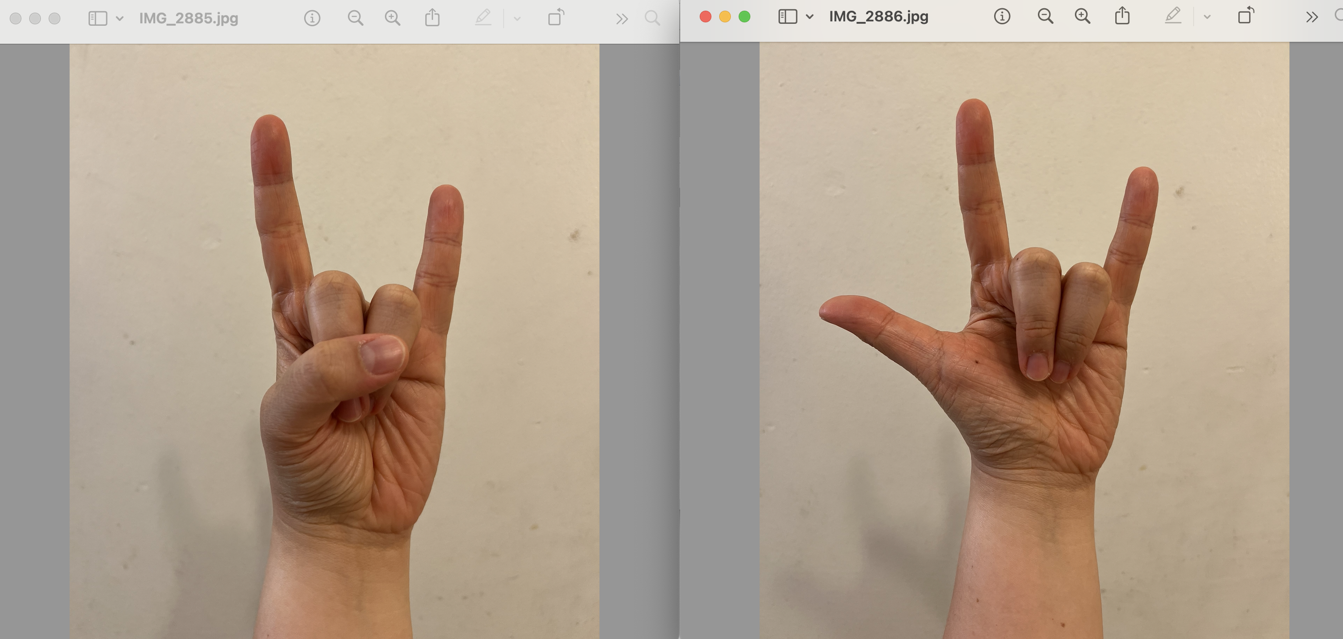 I had an exchange with Liangyi Chang whom I worked with on the Free Hong logo, and we were debating between whether the thumb should stick out or not as we have seen rock fans use both though the first image is the actual symbol for rock and roll. The second image also means ‘I love you’ in American Sign Language, and so I stuck with the first hand. My third and fourth fingers kind of form a heart anyway, so love was not lost.