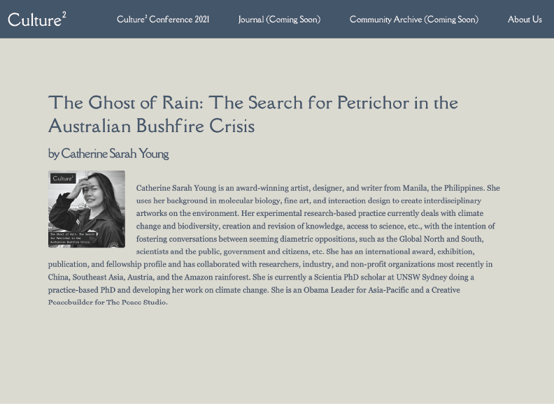 I’m very cognizant of how I’m able to do my work thanks to residencies and fellowships, as well as the generosity of time and resources of a lot of people. I’m going to work really hard for this to come true. Many thanks to all my previous and current collaborators!