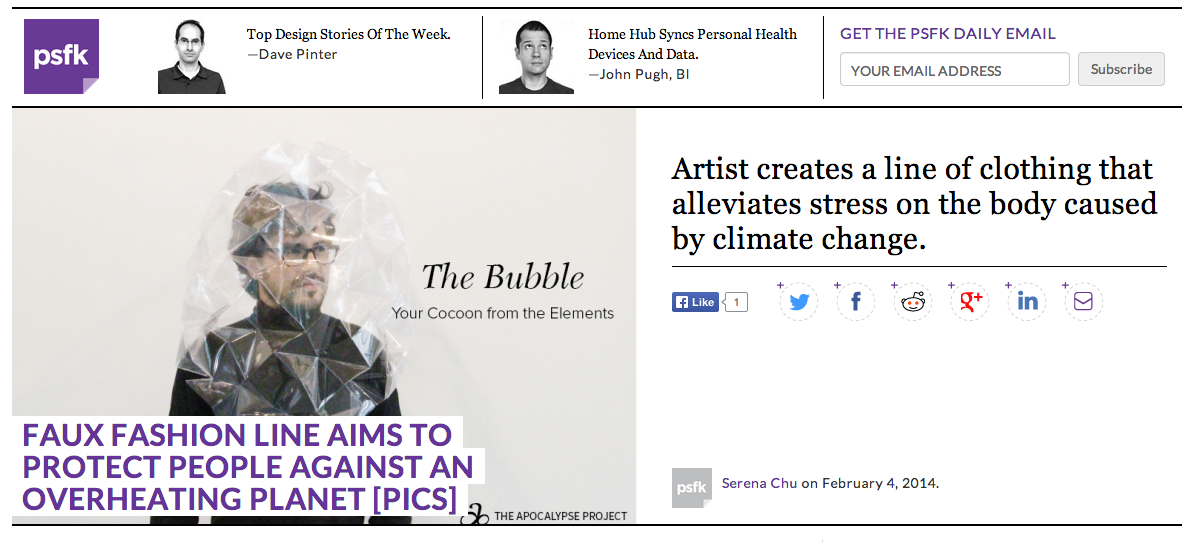 Serena Chu features Climate Change Couture on PSFK. Thank you for your support! Read the article here.