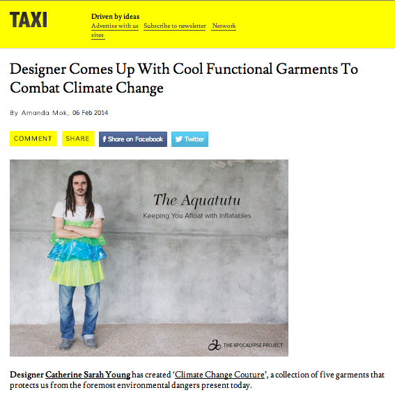 Amanda Mok of Design Taxi featured Climate Change Couture. Thanks so much! Read the article here.