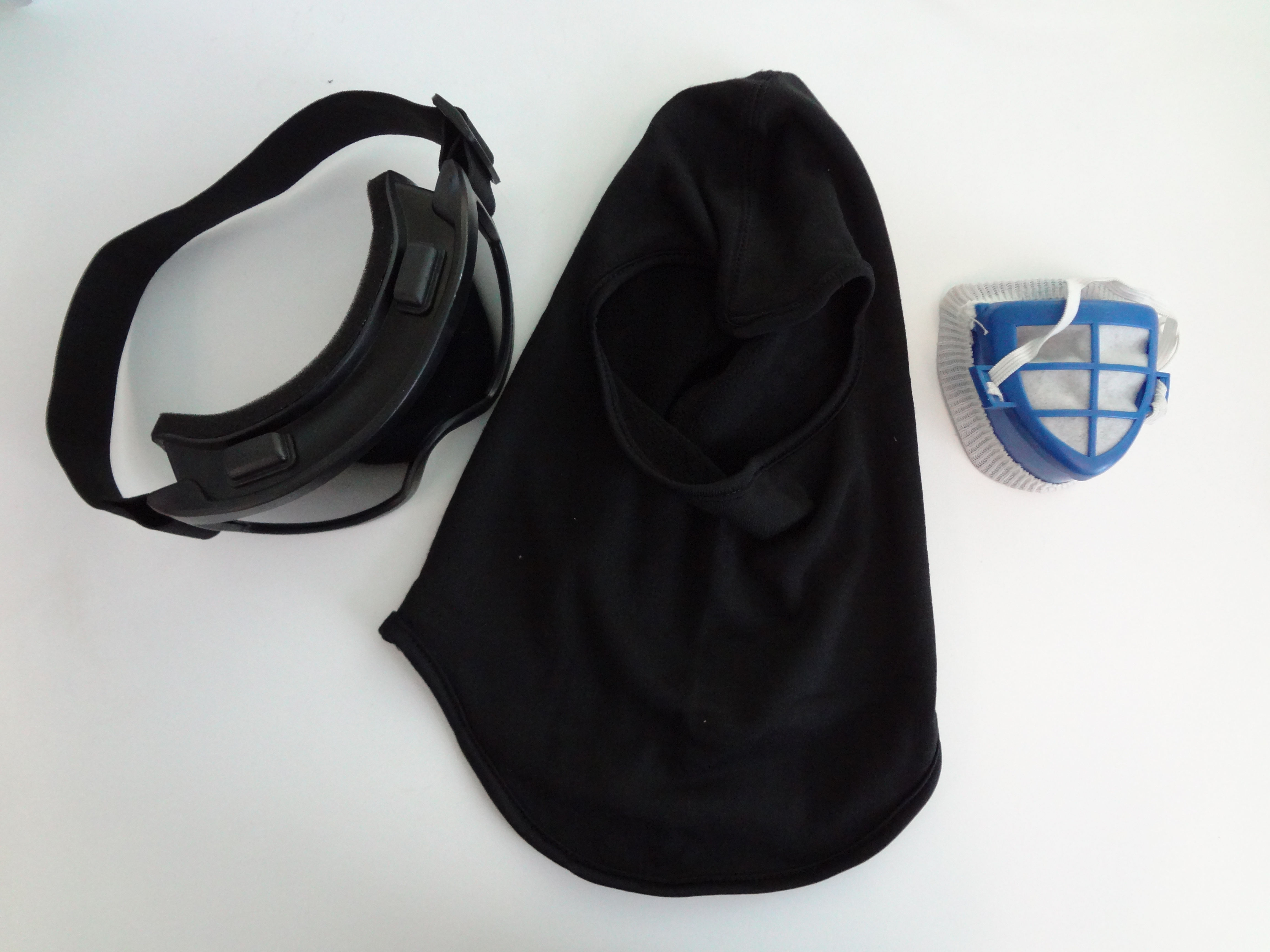 I bought a pair of goggles, a head mask, and a face mask. I’m trying to see how the design of each can possibly fit into one of my projects.