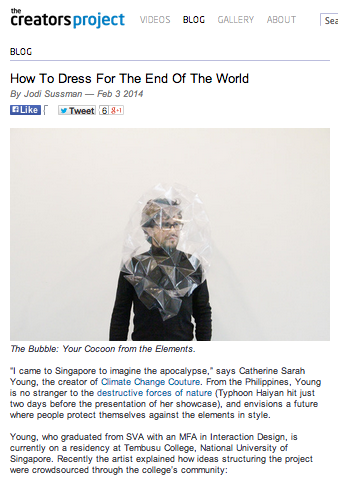 Here I talk about what led me to do The Apocalypse Project, from my roots in art, science, and interaction design, to my research in South Korea and Singapore, how being a journalist in my past life helped me think of Climate Change Couture, and how this project has made me rethink my own fashion choices.