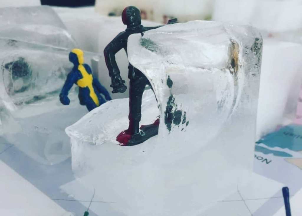 The artwork Arctic Ice Chess is a project created by the Philippine artist Catherine Sarah Young; where plastic toy soldiers are frozen in ice cubes and take up positions as standard chess pieces; and where the ice pieces melt as this classic strategy game unfolds throughout the playing period.
