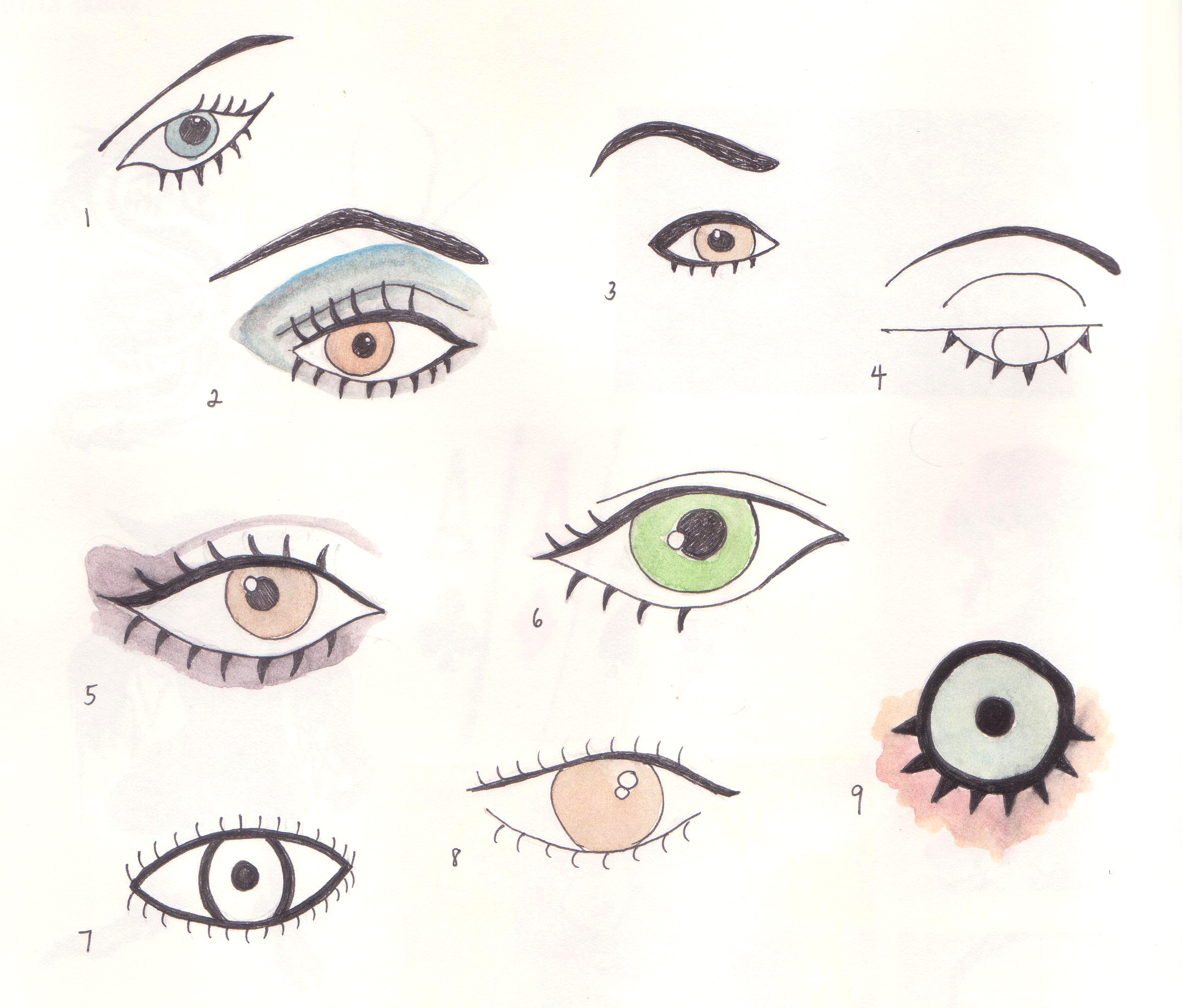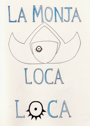 So. La Monja Loca. The brief given to me by Ria, the project manager / producer, was to generate an iconic crazy nun with one eye that was a cross between Clockwork Orange and Twiggy’s spiky eyelashes. In the beginning, I sketched out variations of eyes.