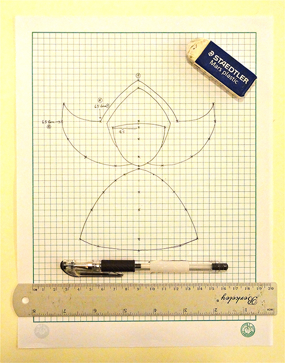 To make sure things are symmetrical, I sketched the nun on graph paper. I always feel more connected with my work when I first draw them.