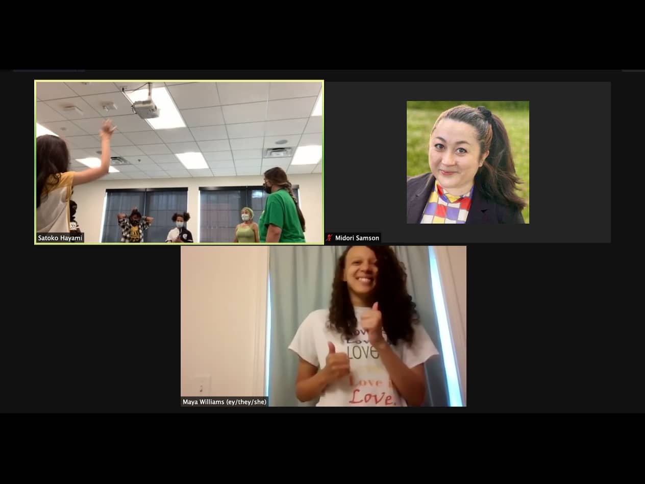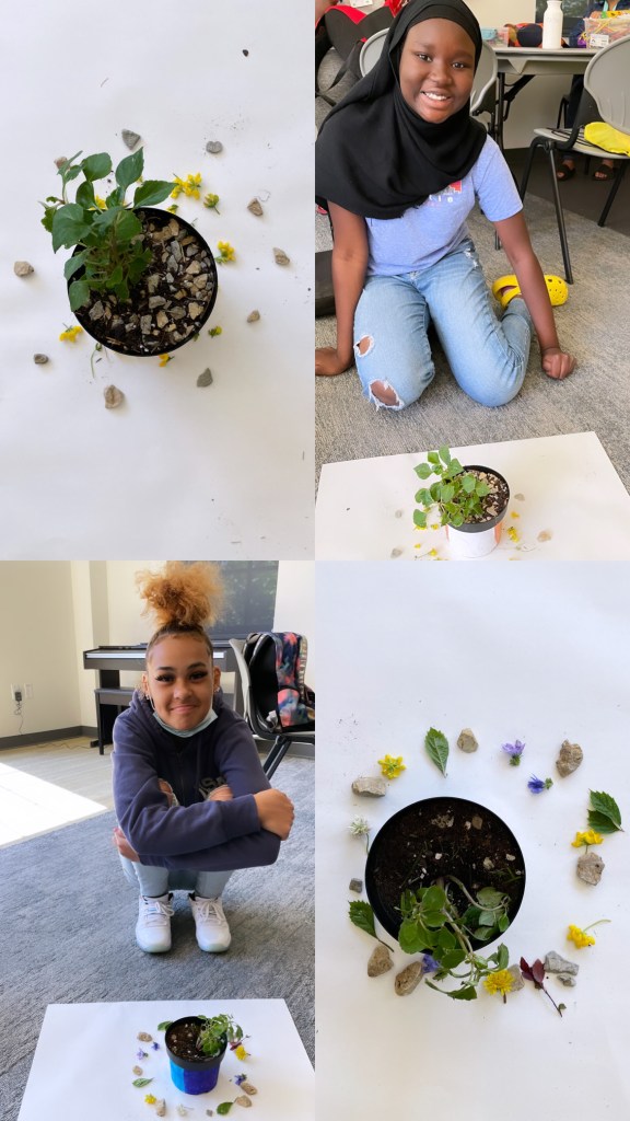 During the camp, the four of us worked in rotating teams of two so that the two remote teachers (Me and Maya) worked with those in Madison (Midori and Satoko). Each week, we had tons of short and fun activities built around key words such as Hello, Ground, Connect, Rest, Build, Community, Communicate, and Share. We used various mediums, such as music, poetry, scent, sculpture, gardening, and others.