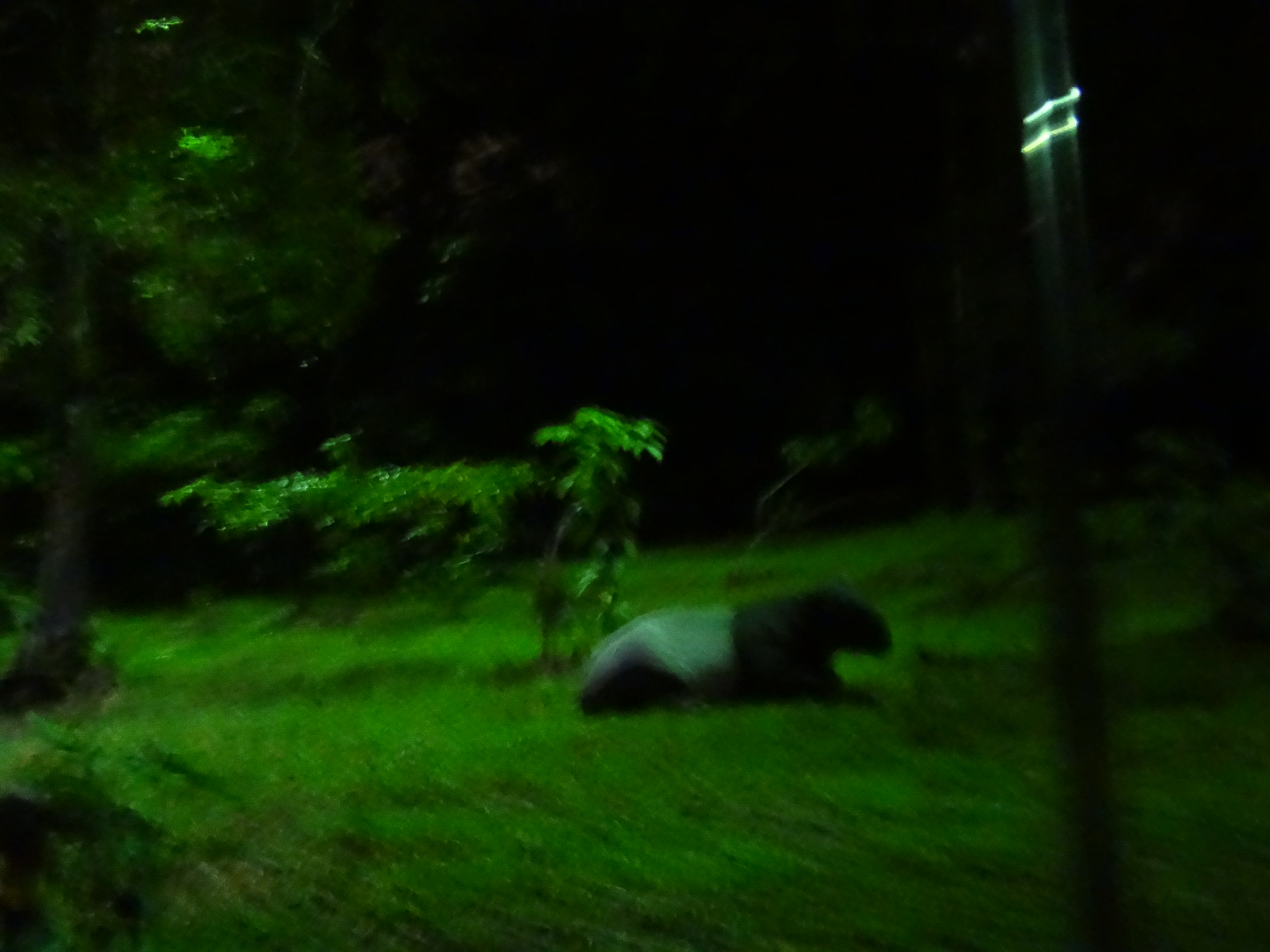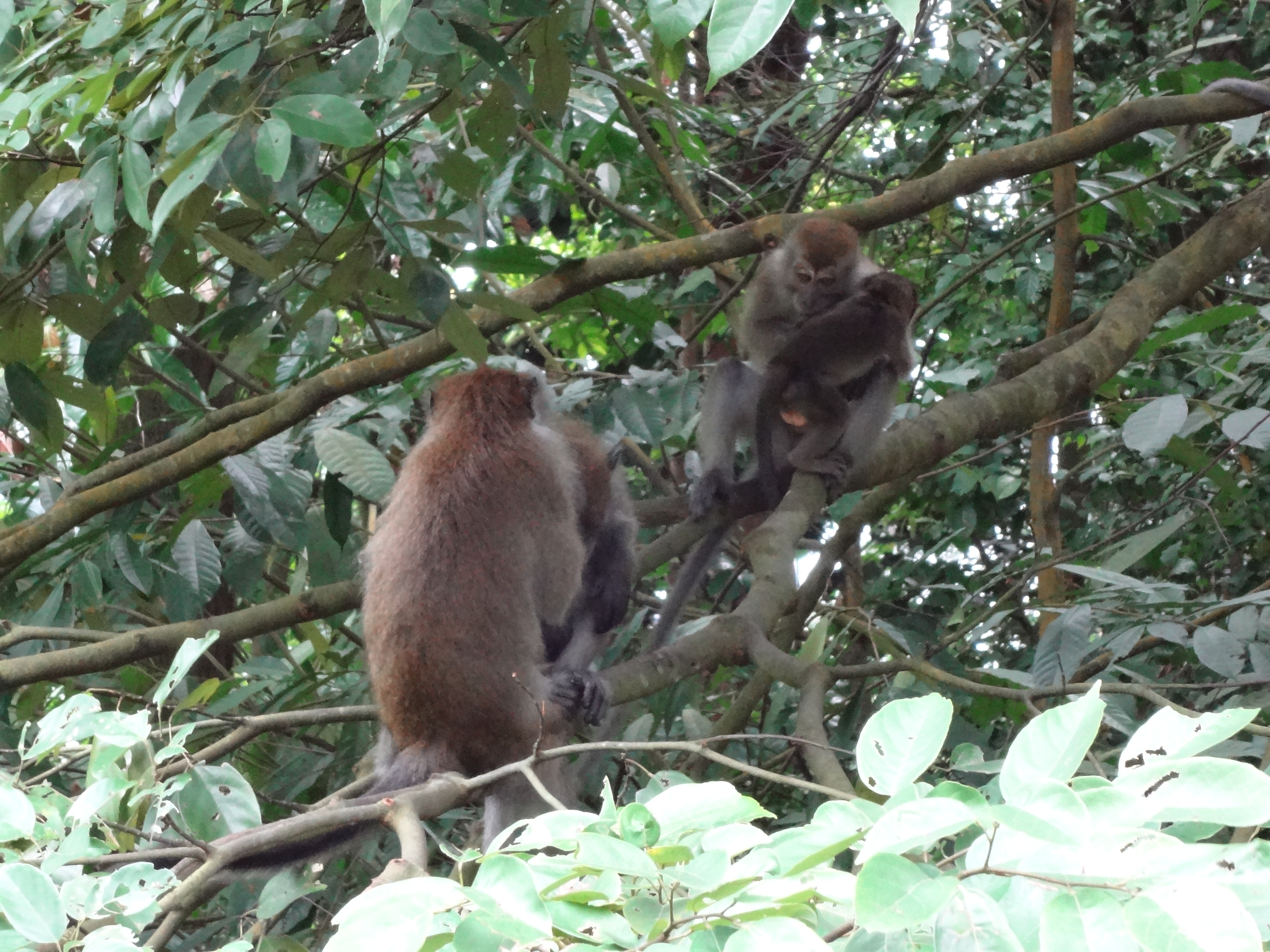 Signs warned me of wild animals, such as monkeys and, oh dear, wild boars. There was a little army of monkeys who were following me and some other hikers, having learned to associate people with food. I warily walked past them on the trees. After I passed, they appeared on the trail. I was only able to get this quick blurred shot before I fled.