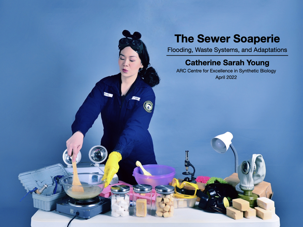 (April 4, 2022)—I was a panelist for the annual conference of the ARC Centre of Excellence in Synthetic Biology headquartered at Macquarie University in a panel run by their Designer-in-Residence Jestin George, about “What can creative practitioners bring to the metaphorical SynBio table?” I spoke about my work along the nexus of art and sustainability, particularly The Sewer Soaperie project in the context of the NSW flooding this year.